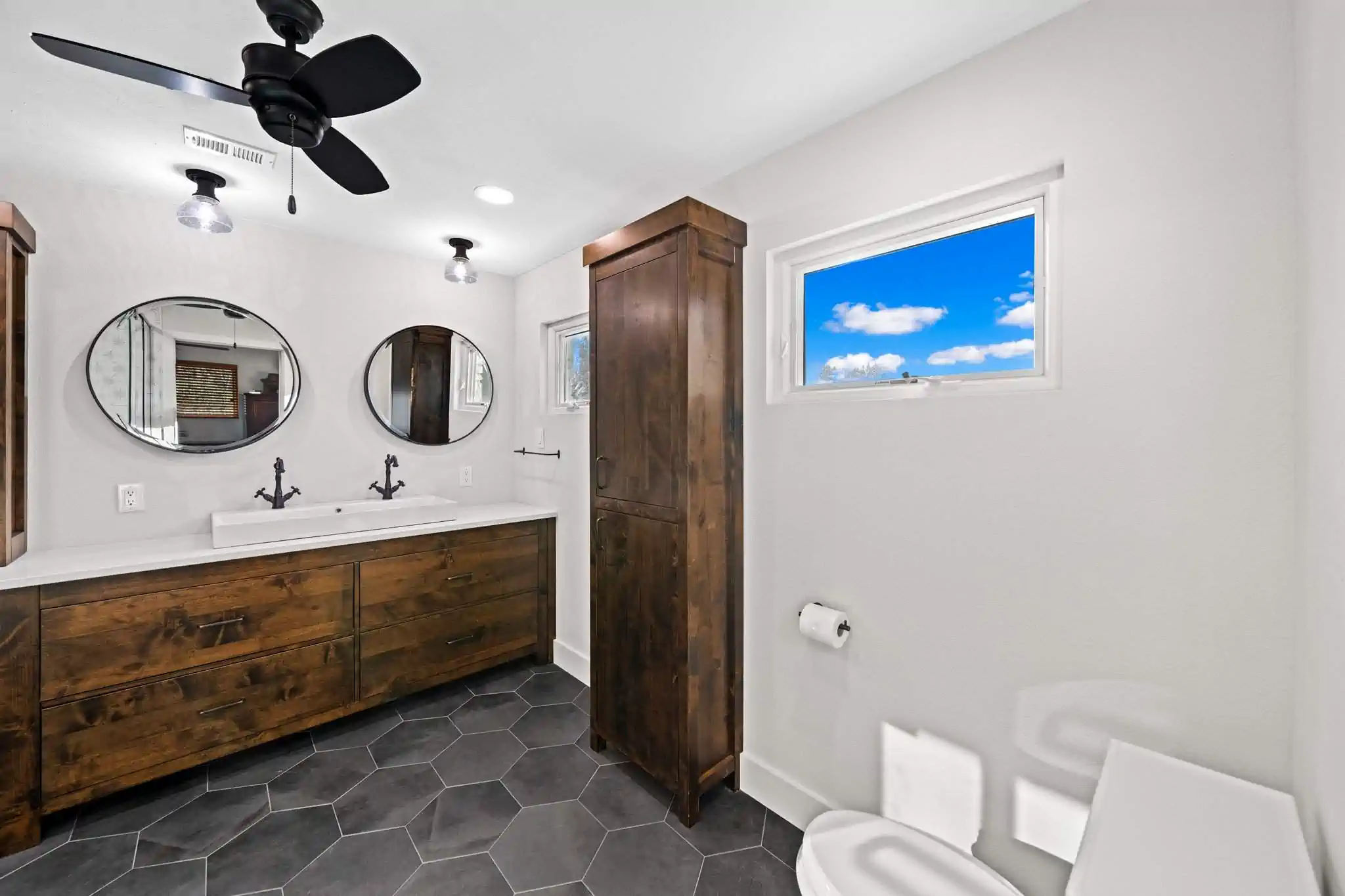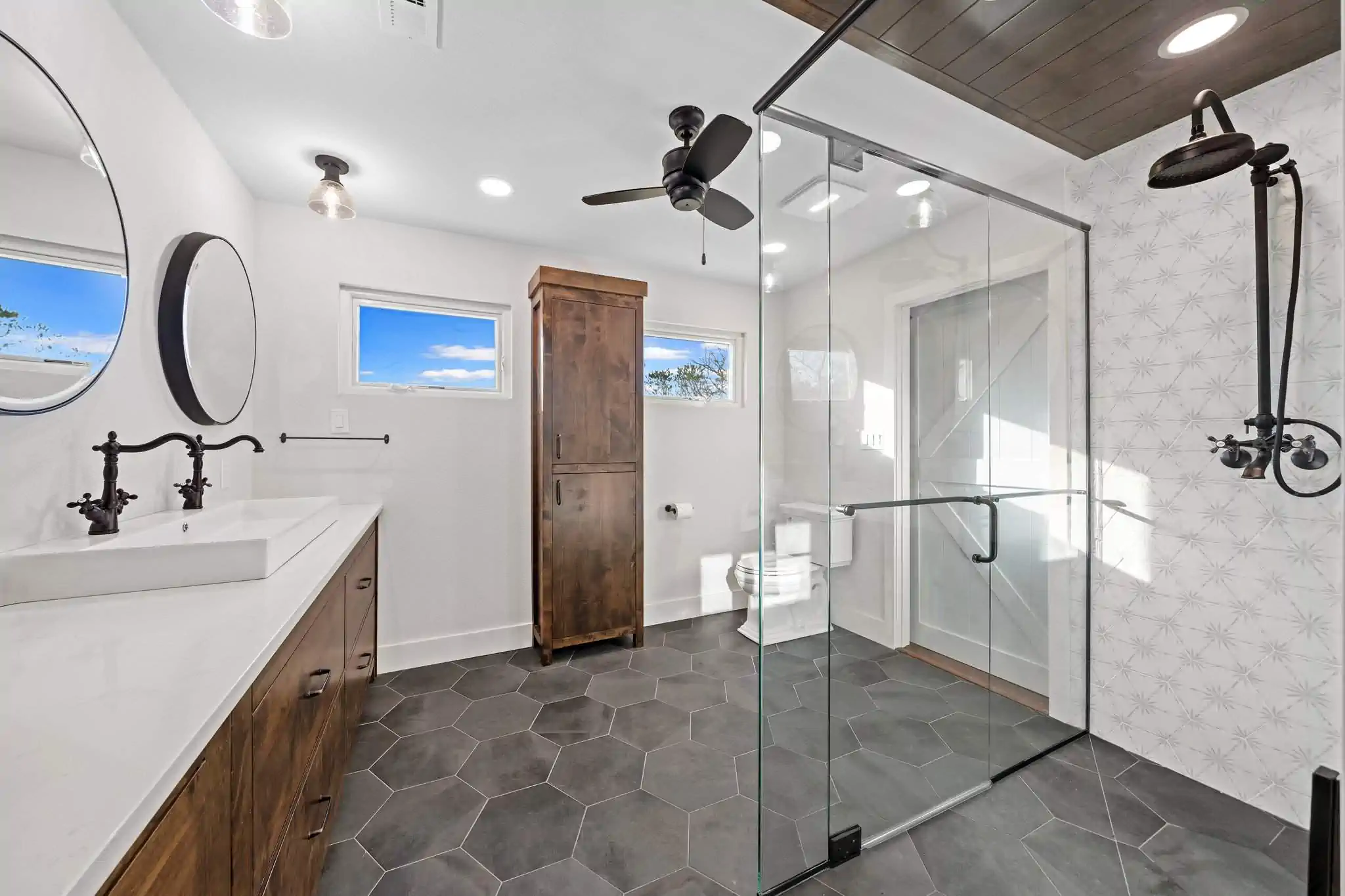 Expansive and naturally-lit bathroom experience