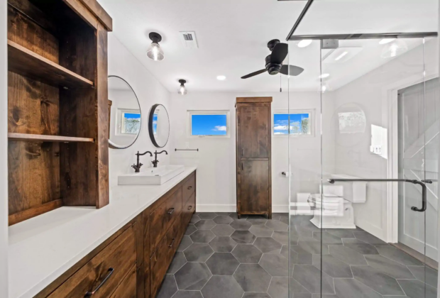 This Mountain Home bathroom remodel delivers a dramatic transformation. By thoughtfully opening the space and layering modern design with rich, natural textures, this project delivers a bathroom that feels spacious, luminous, and effortlessly luxurious.