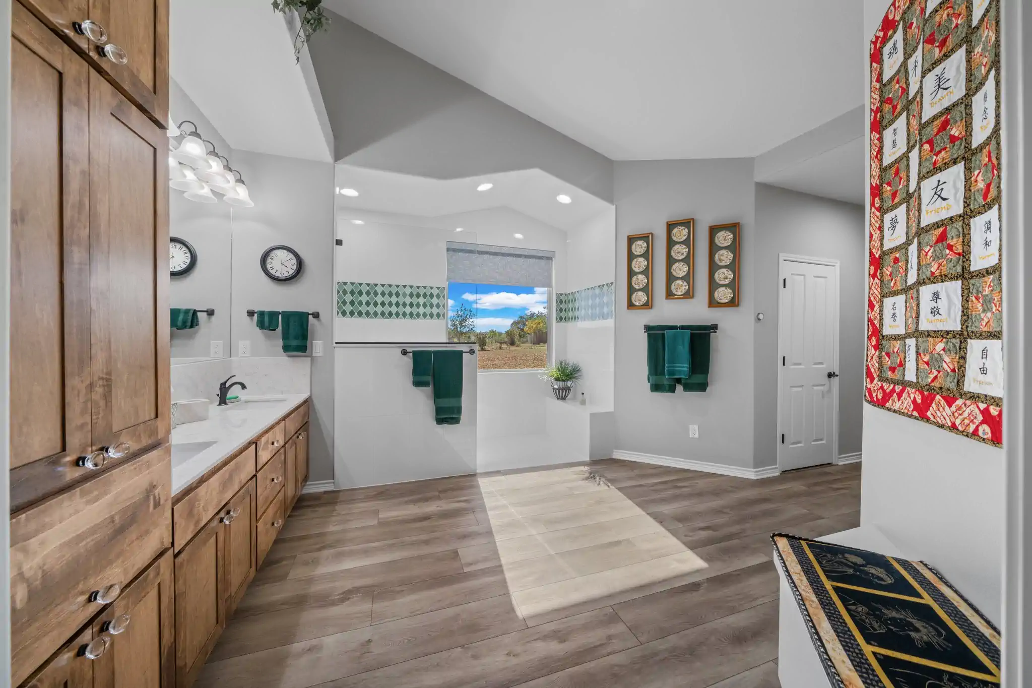 They wanted bathrooms that reflected a lighter mood, improved usability, and subtle personality through color and texture.