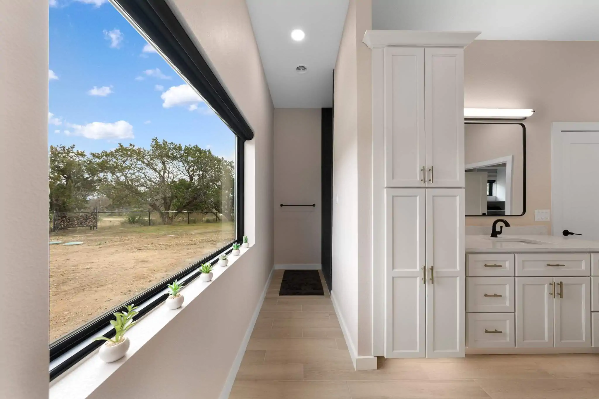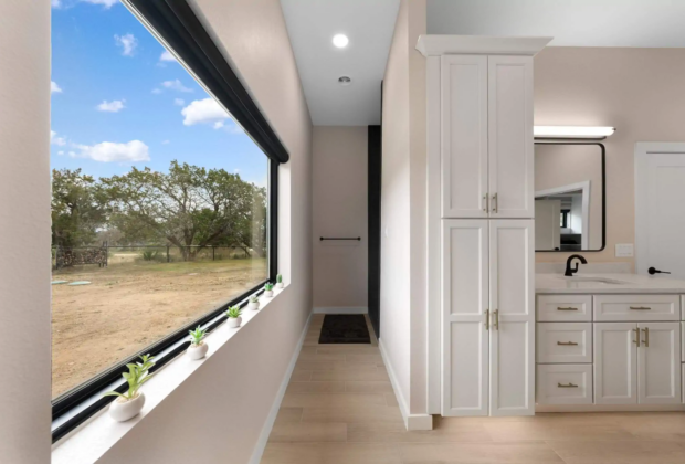 What once felt heavy and timeworn has been completely renewed. The home’s deep earth tones, dark woods, and aging finishes gave way to a fresh palette of light, warmth, and unique character. A striking new addition rises with tall ceilings and striking angles, paired with expansive windows that invite soft, natural light throughout the day. This home has been transformed into a space that feels open, welcoming, and distinctly tailored to the client’s lifestyle.